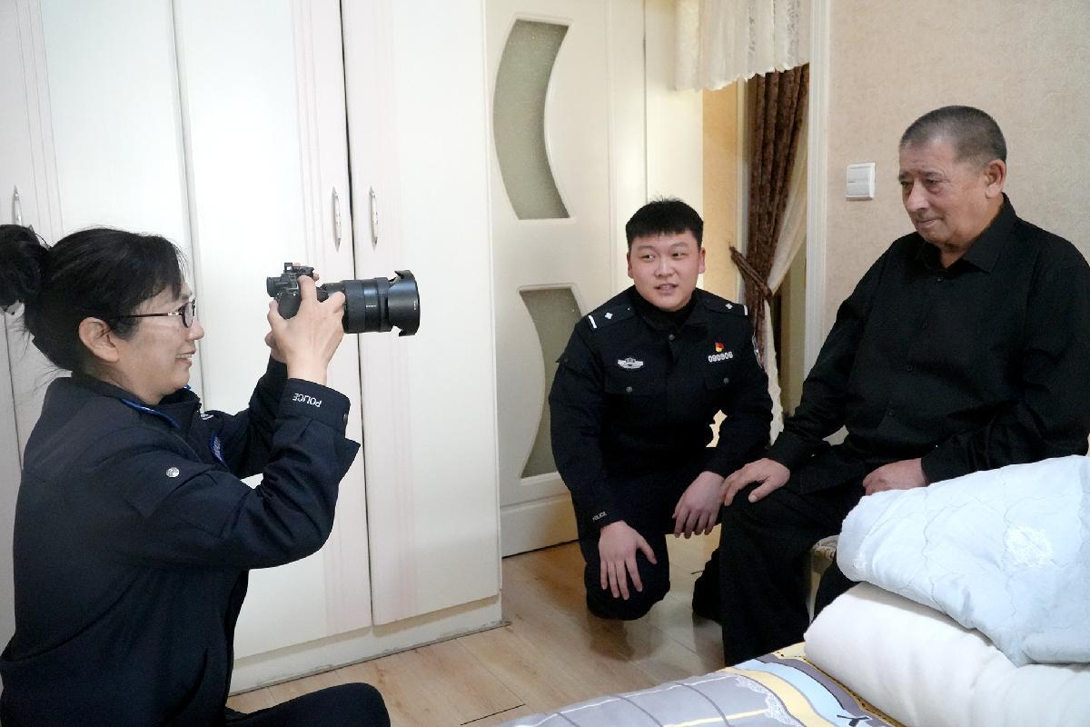 3月3日,新疆維吾爾自治區(qū)克拉瑪依市公安局白堿灘區(qū)分局中興路街道派出所民輔警上門為行動不便的老人辦理身份證,將便民服務送到群眾家門口。