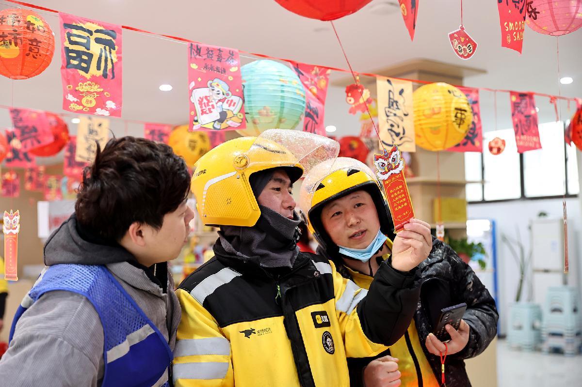 3月1日,安徽省淮北市相山東街道總工會(huì)在工會(huì)驛站舉辦快遞外賣員元宵燈謎會(huì)。主辦方將交通法規(guī)、勞動(dòng)權(quán)益保障等知識融入燈謎,讓快遞小哥、外賣騎手在猜謎闖關(guān)的歡樂氛圍中學(xué)習(xí)法律知識,感悟傳統(tǒng)文化。
