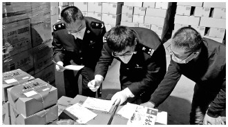 圖為北京海關(guān)關(guān)員上門對(duì)企業(yè)出口年貨進(jìn)行查驗(yàn)。