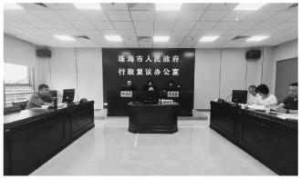 圖為7月23日,廣東省珠海市人民政府在市民中心行政復(fù)議聽(tīng)證室,就某機(jī)械租賃有限公司不服市自然資源局責(zé)令改正違法行為通知提起行政復(fù)議一案舉行聽(tīng)證會(huì)。 廣東省司法廳供圖