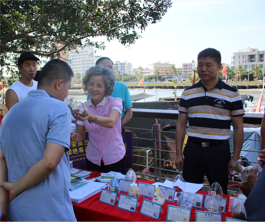 值“6·26”國際禁毒日到來之際,海南省海口市美蘭區(qū)海甸街道海岸線驛站開展“護航自貿(mào)港—禁毒在行動暨慶祝建黨100周年”為主題的全民禁毒宣傳。圖為6月20日,工作人員為漁民介紹毒品的危害。