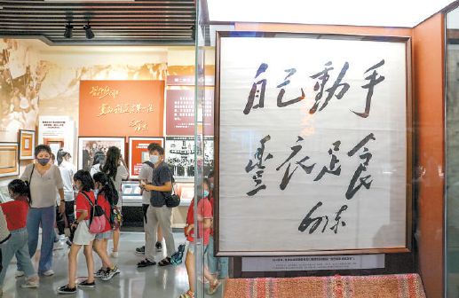 展覽還運(yùn)用不同手段對亮點(diǎn)文物進(jìn)行了重點(diǎn)設(shè)計和突出展示。比如,展廳選取了毛澤東起草發(fā)布的《對日戰(zhàn)爭宣言》《論持久戰(zhàn)》《共產(chǎn)黨人》以及中共中央發(fā)表的紀(jì)念抗戰(zhàn)周年宣言與口號等在黨史上具有重要影響的部分重要文獻(xiàn),以電子書、知識問答、動畫演示等電子屏形式進(jìn)行了展示。