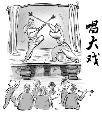 記得小時候,幾乎稍微大些的村莊都有戲班子,那時還沒通電,所以就談不上什么音響、照明、舞美設(shè)計了,只要演出時能有個土戲臺,演員能穿身戲衣、化個戲妝就不錯了。那時的演員嗓子全是真功,不用借助音響就能傳得很遠很遠;那時的照明也就是在舞臺前上方掛著幾盞用油的“大鱉燈”,正演時燈快滅了要趕快搬個高凳上去再添點油。就這,鄉(xiāng)親們卻聽得津津有味,看得如癡如醉。