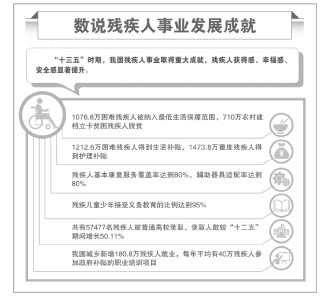 與此同時(shí),殘疾人民生兜底保障不斷強(qiáng)化,殘疾人社會(huì)保障水平逐步提高,殘疾人康復(fù)狀況明顯改善,殘疾人受教育水平顯著提高,殘疾人文化體育活動(dòng)豐富活躍,城鄉(xiāng)無(wú)障礙環(huán)境建設(shè)加快推進(jìn)。殘疾人就業(yè)狀況穩(wěn)步提升,許多機(jī)關(guān)、事業(yè)單位和國(guó)有企業(yè)開(kāi)始定向招錄殘疾人,帶動(dòng)更多單位積極消除歧視、促進(jìn)殘疾人平等就業(yè)。殘疾人的民生保障理念和措施不斷強(qiáng)化,殘疾人的獲得感、幸福感和安全感不斷提升。