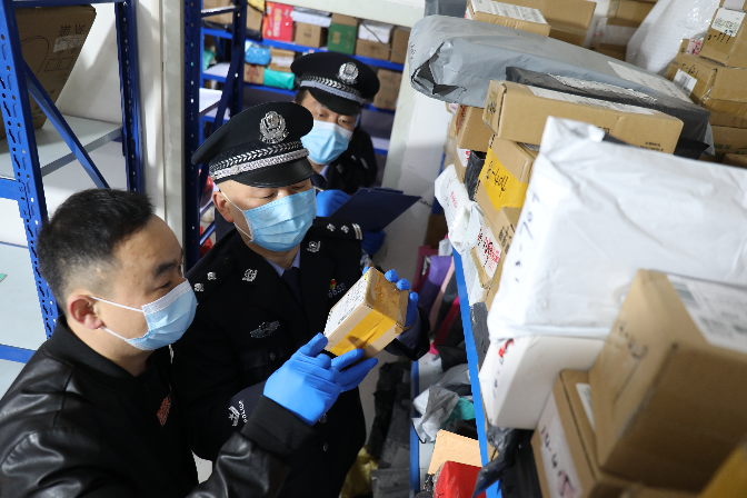 為加強(qiáng)寄遞渠道治安管理工作,提升寄遞行業(yè)疫情防控能力,3月17日,安徽省舒城縣公安局城南派出所民警對(duì)轄區(qū)寄遞行業(yè)網(wǎng)點(diǎn)進(jìn)行了安全檢查。民警重點(diǎn)檢查工作場(chǎng)所的疫情防控、收寄快件消毒以及個(gè)人防護(hù)工作,落實(shí)快件實(shí)名收寄、收寄驗(yàn)視、安全防范等相關(guān)制度執(zhí)行情況。圖為民警查驗(yàn)收寄件落實(shí)相關(guān)安全制度情況。