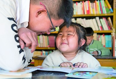 山西靈丘縣東窖村大學(xué)蜂鄉(xiāng)村圖書館內(nèi),小朋友和圖書館負責人交流。新華社發(fā)
