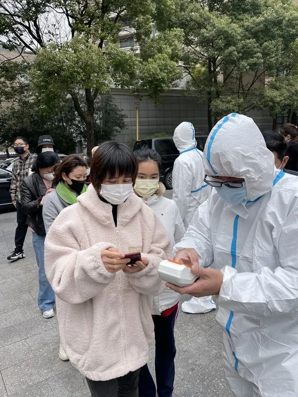 “許多外籍住戶對我們的工作評價非常高,因為他們從沒見過這樣一支有力的隊伍?!泵却罕硎?,從凌晨接到核酸篩查的任務(wù),短短的幾個小時,從無到有,居委與物業(yè)就完成了臨時的檢驗棚的搭建,一米線設(shè)置、桌椅板凳、引導(dǎo)標志、動線安排……一支志愿者隊伍也誕生了。
