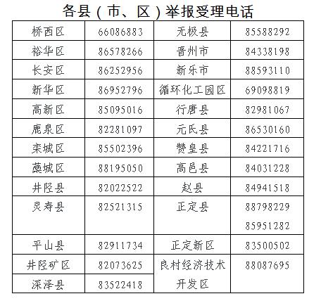 為便于更好開展專項(xiàng)整治行動(dòng),充分發(fā)揮群眾的監(jiān)督作用,精準(zhǔn)受理辦理群眾舉報(bào),石家莊市住房和城鄉(xiāng)建設(shè)局公布舉報(bào)受理電話和違法行為認(rèn)定標(biāo)準(zhǔn)。