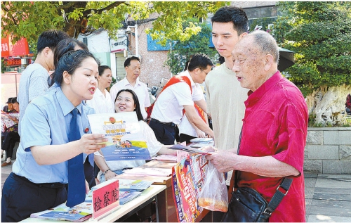 6月15日,湖北省羅田縣檢察院干警來(lái)到該縣人民廣場(chǎng)開展打擊整治養(yǎng)老詐騙宣傳活動(dòng)?;顒?dòng)現(xiàn)場(chǎng),檢察干警圍繞養(yǎng)老詐騙的危害性、常見詐騙手段以及識(shí)別防范養(yǎng)老詐騙方法等內(nèi)容開展宣傳,引導(dǎo)群眾樹立防范意識(shí),守好自己的養(yǎng)老錢。記者戴小巍 通訊員王章丁 攝