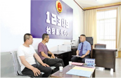 圖為王文喜(右一)在檢察服務(wù)中心接待來(lái)訪群眾。 本報(bào)通訊員 周潤(rùn)霞 攝