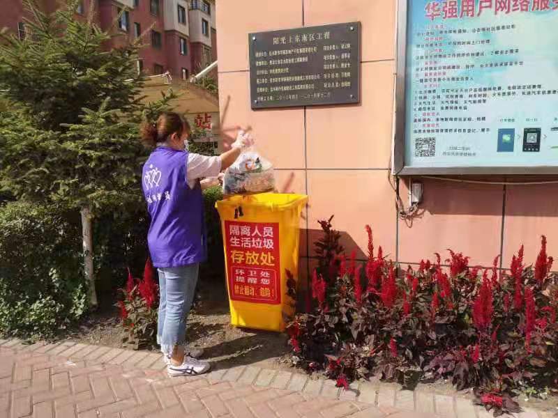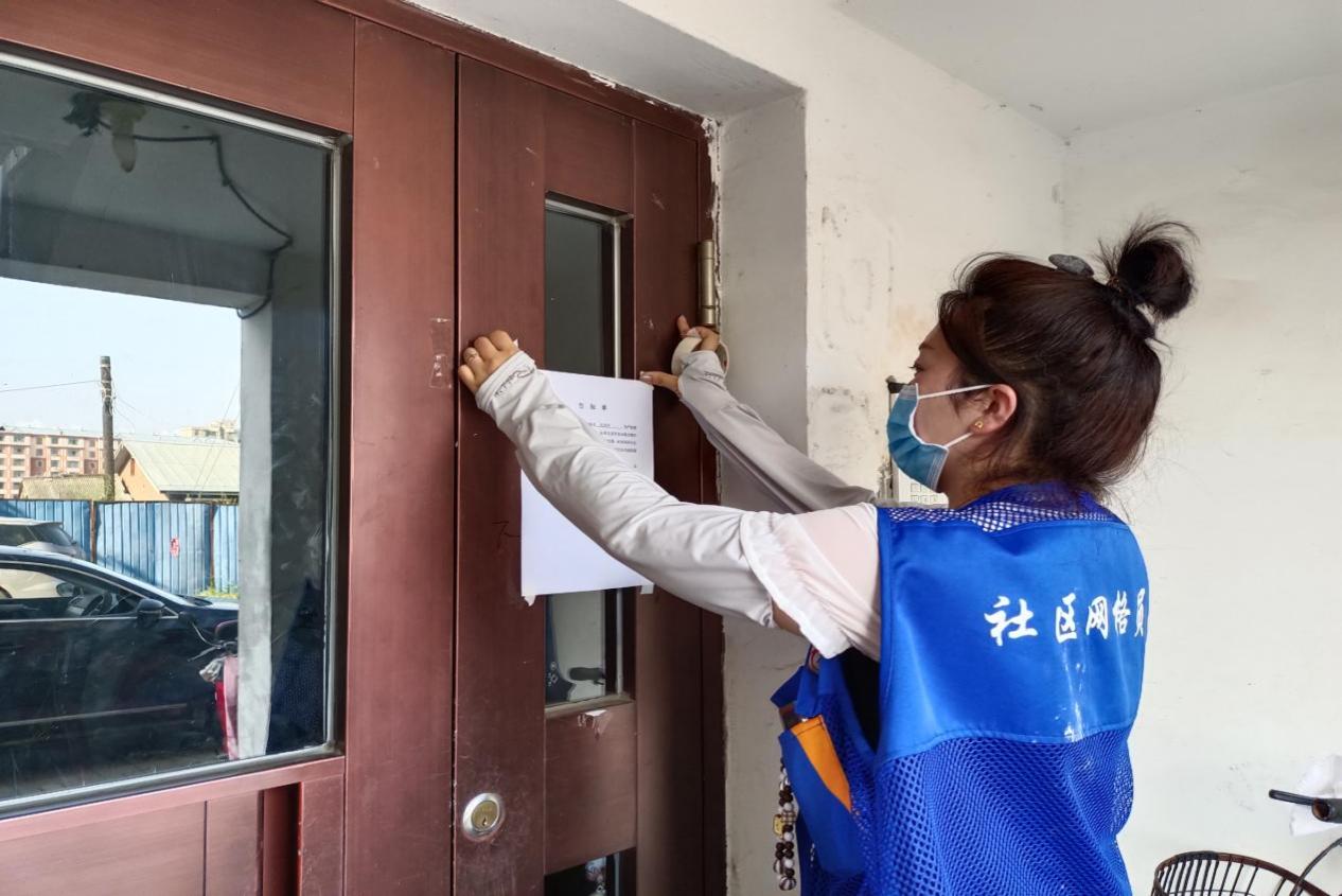 網(wǎng)格員在小區(qū)單元門粘貼疫情防控提示