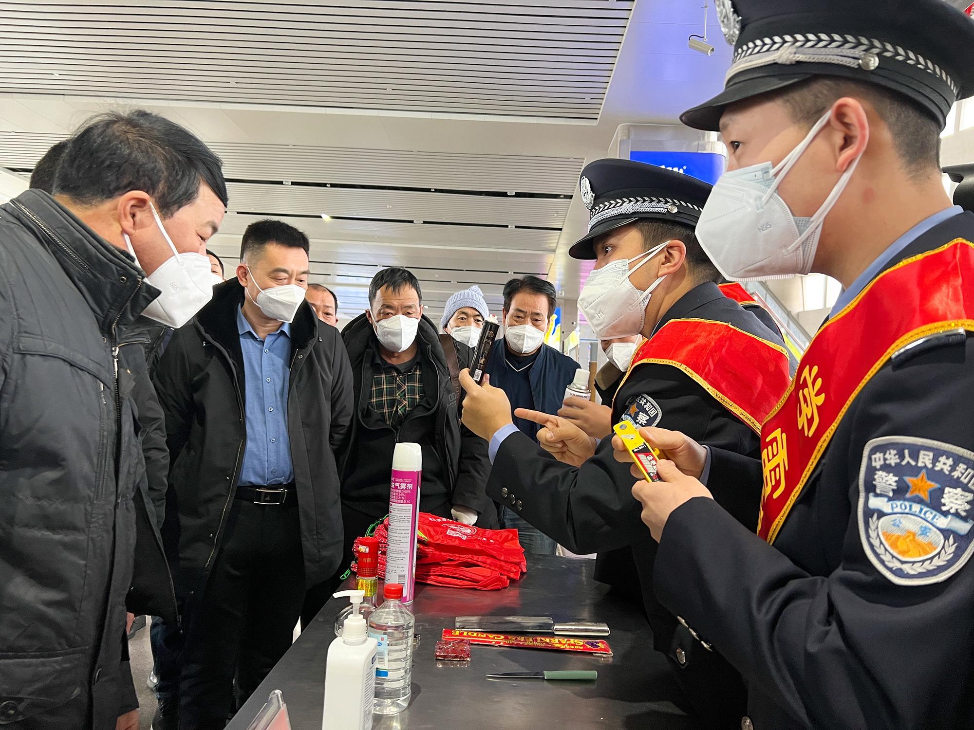 近日,烏魯木齊鐵路公安局奎屯公安處組織各站派出所開展青年志愿者活動(dòng),民警深入候車廳、售票室、車廂內(nèi),通過(guò)發(fā)放宣傳資料、實(shí)物展示講解等方式,宣講鐵路安全知識(shí)、“防電詐”安全常識(shí)等,提升旅客群眾安全防范意識(shí),營(yíng)造安全、有序、溫馨的春運(yùn)乘車環(huán)境,展示良好鐵警形象。圖為克拉瑪依站派出所民警向候車旅客講解禁止攜帶的危險(xiǎn)物品種類。