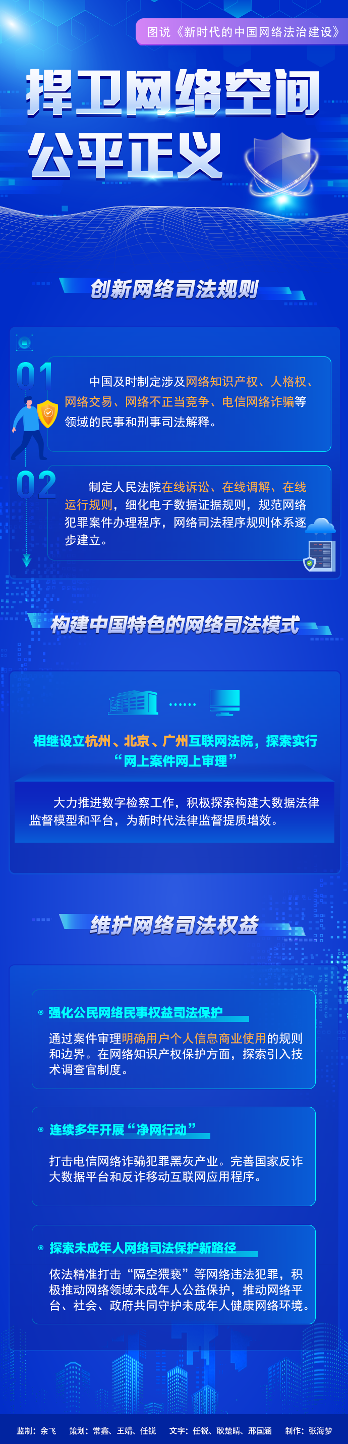 互聯(lián)網(wǎng)是人類文明發(fā)展的重要成果,法治是互聯(lián)網(wǎng)治理的基本方式。長期以來,我國堅(jiān)持依法治網(wǎng),持續(xù)推進(jìn)網(wǎng)絡(luò)空間法治化,推動(dòng)互聯(lián)網(wǎng)在法治軌道上健康運(yùn)行。3月16日,國務(wù)院新聞辦公室發(fā)布《新時(shí)代的中國網(wǎng)絡(luò)法治建設(shè)》白皮書,讓我們一起來看如何捍衛(wèi)網(wǎng)絡(luò)空間公平正義。