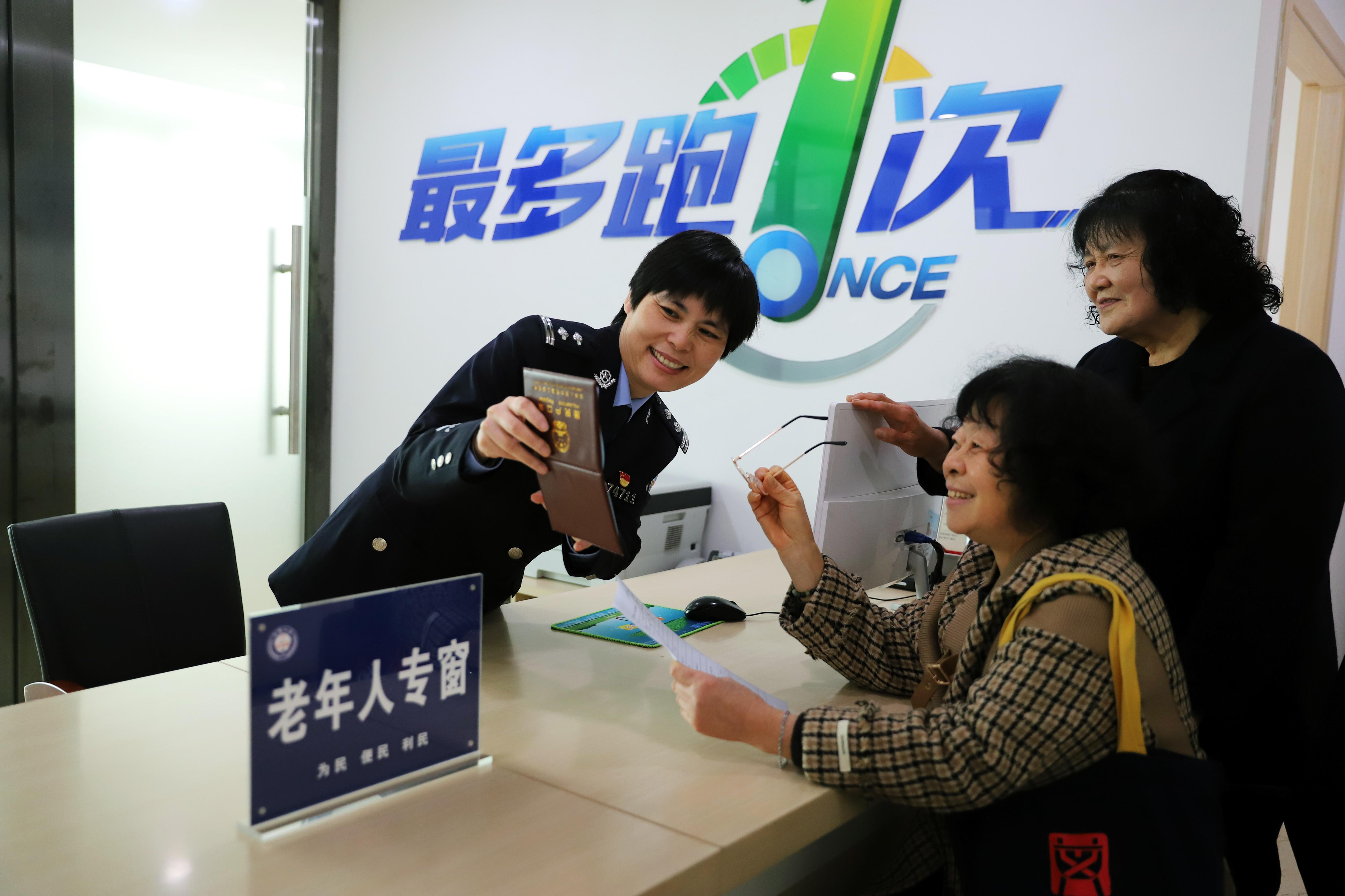 為方便老年人辦理業(yè)務(wù),今年以來,浙江省臺(tái)州市公安局路橋分局各辦證窗口專門開設(shè)老年人窗口,同時(shí)配備老花眼鏡等設(shè)施為老年人提供溫馨服務(wù)。圖為近日,路橋公安分局橫街派出所民警耐心為老年人辦理戶籍業(yè)務(wù)。本報(bào)通訊員 蔣友親 攝