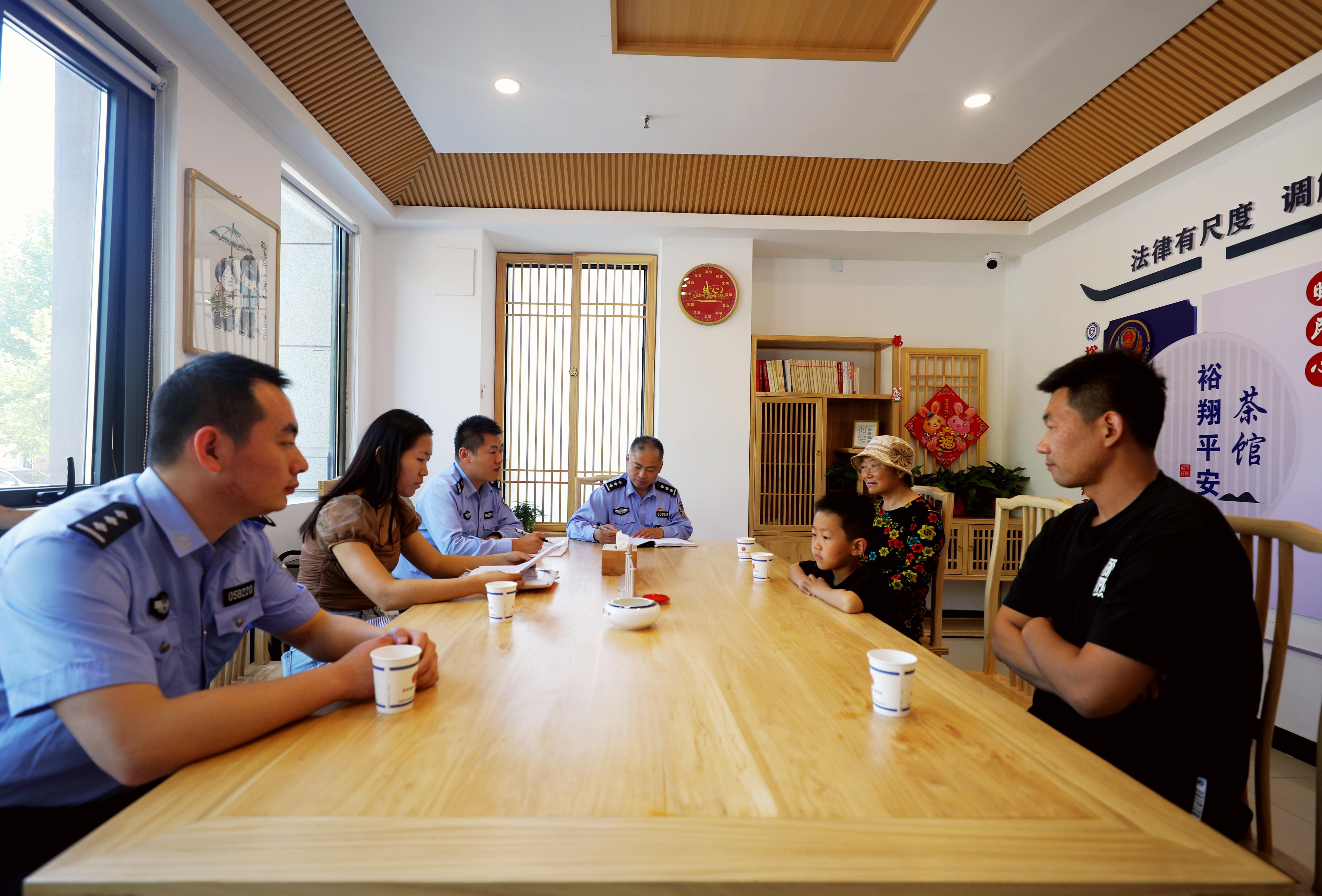“裕翔平安茶館”面積約25平方米,堅(jiān)持以人為本、和諧暖心,采用“中國風(fēng)”建設(shè)裝修風(fēng)格,設(shè)立“法律有尺度、調(diào)解有溫度、辦事有準(zhǔn)度”主題文化墻,積極營造“和為貴”的氛圍。實(shí)際工作中,民警將調(diào)解矛盾糾紛和燒水敬茶、談心談話充分結(jié)合,實(shí)現(xiàn)當(dāng)事人由“怒氣沖沖”到“心平氣和”、由“缺乏理智”到“通情達(dá)理”的轉(zhuǎn)變,搭建當(dāng)事人交流溝通的暖心平臺(tái)。