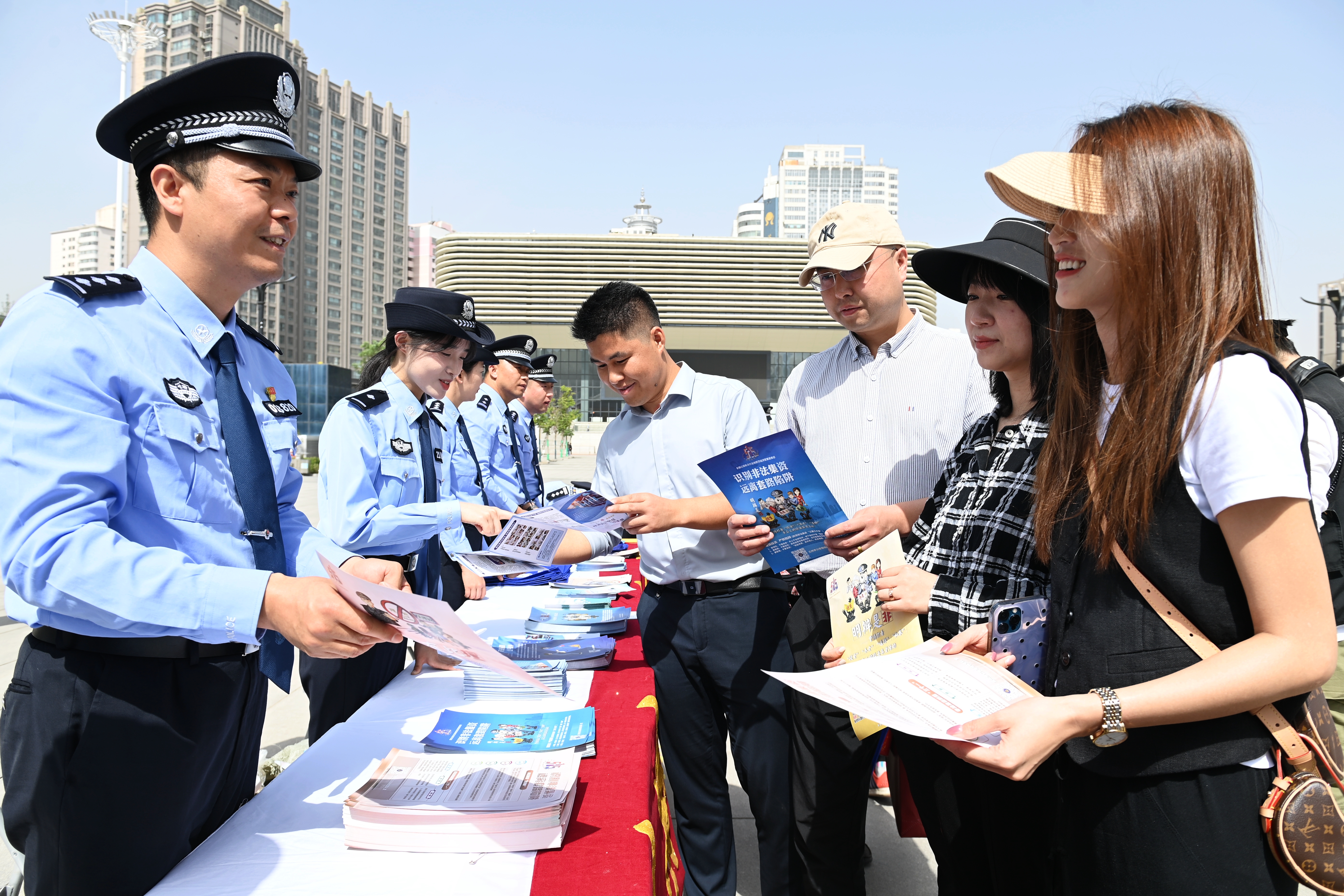 近日,甘肅省蘭州市公安局經(jīng)偵支隊(duì)民警走上街頭,開展打擊和防范經(jīng)濟(jì)犯罪宣傳活動(dòng),通過(guò)發(fā)放宣傳資料、現(xiàn)場(chǎng)接受咨詢、講解案例等方式,向群眾普及常見的經(jīng)濟(jì)犯罪和電信詐騙套路,提高群眾防騙意識(shí)。圖為民警向群眾發(fā)放宣傳資料,現(xiàn)場(chǎng)接受咨詢。 本報(bào)通訊員 張軍揚(yáng) 攝