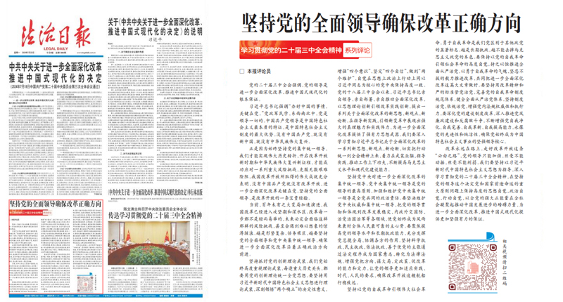 黨的二十屆三中全會(huì)強(qiáng)調(diào),黨的領(lǐng)導(dǎo)是進(jìn)一步全面深化改革、推進(jìn)中國式現(xiàn)代化的根本保證。