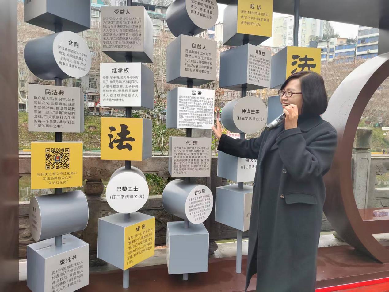 “穿過這條居民小巷,就能到達遵義會議會址的出口處,這條小巷就是‘紀念館社區(qū)民法典主題街’?!笔忻窆渴且幻麍?zhí)業(yè)律師,專程帶孩子來主題街學法。她告訴記者,主題街以民法典為核心內容,聚焦物業(yè)糾紛、消費者權益保護、婚姻家庭等與居民群眾生活密切相關的法律問題,通過漫畫解析、以案說法的形式,將條文轉化為通俗易懂的內容,把法律精神與價值融入群眾日常生活,孩子聽得懂也記得住。