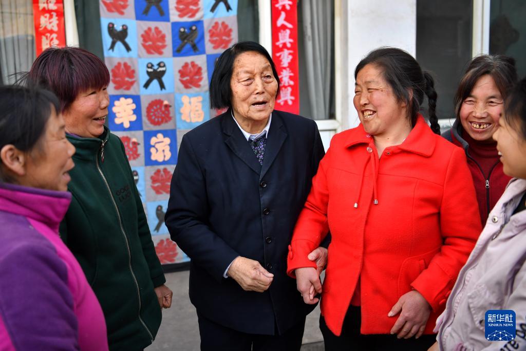 2019年3月23日,申紀(jì)蘭(左三)在山西省平順縣西溝村與村民分享全國(guó)兩會(huì)精神。新華社記者 曹陽 攝