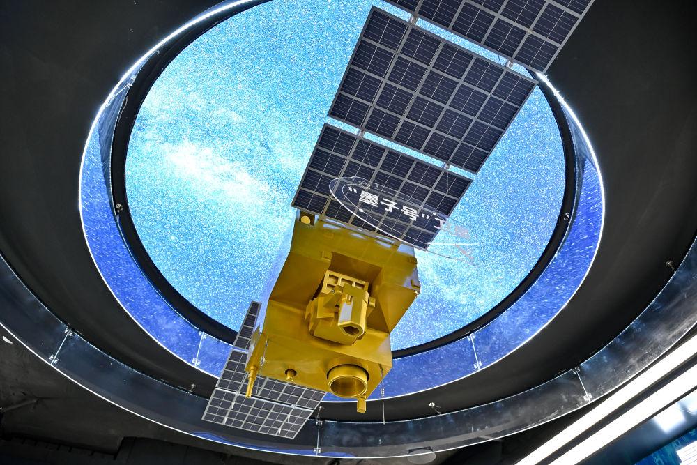 在位于安徽省合肥市的中電信量子信息科技集團(tuán)有限公司科技體驗(yàn)館內(nèi)拍攝的“墨子號”量子衛(wèi)星模型(2025年7月1日攝)。新華社記者 張鋮 攝