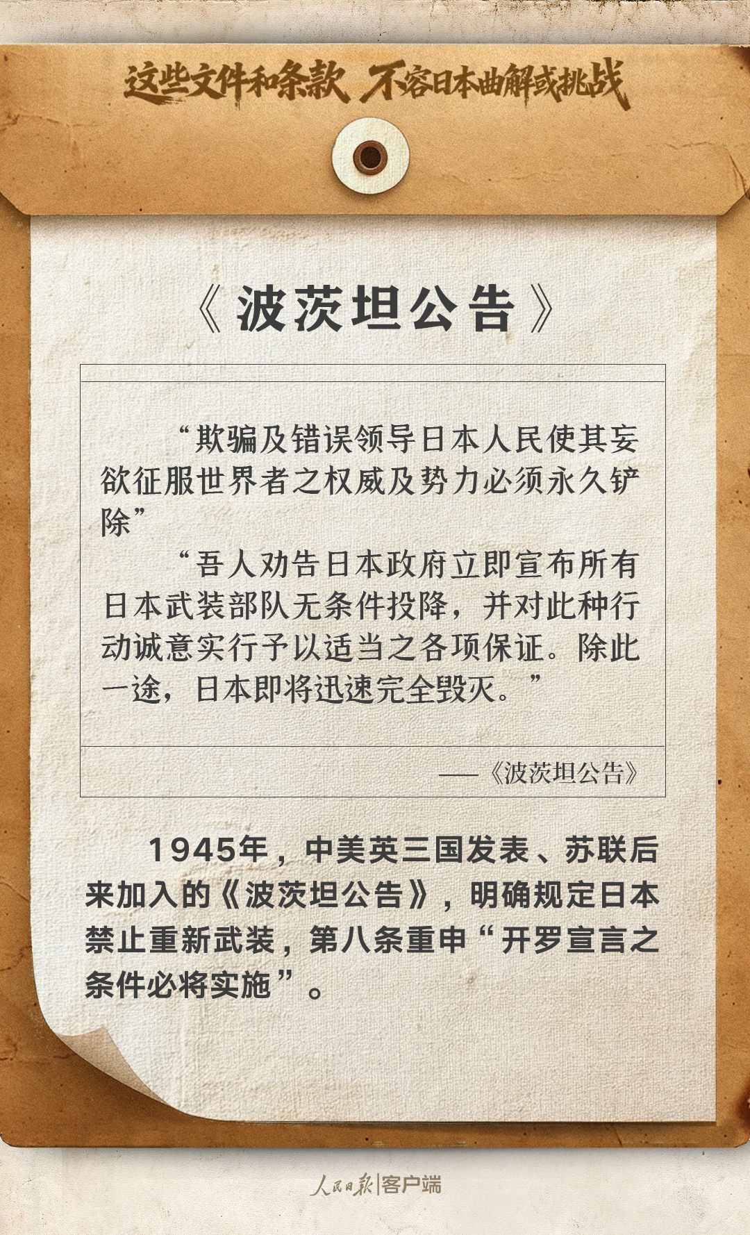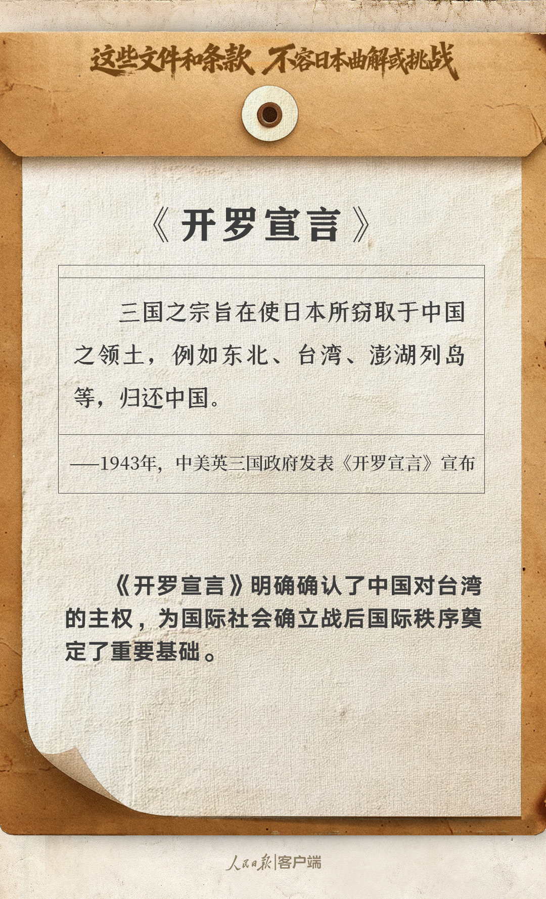 這些文件和條款,不容日本曲解或挑戰(zhàn)