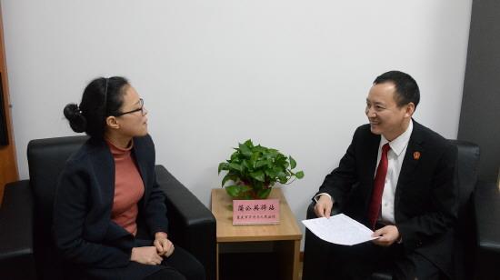 圖為重慶市萬州區(qū)法院三級高級法官助理蒲昌淵在蒲公英驛站背靠背調(diào)解一起涉未成年人切身利益的離婚案。 萬州區(qū)人民法院供圖