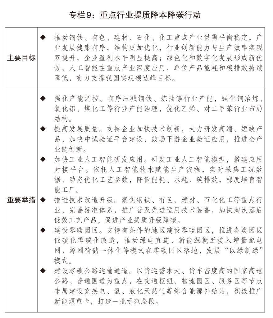 一是持續(xù)推進重點產(chǎn)業(yè)提質(zhì)升級。實施新一輪制造業(yè)重點產(chǎn)業(yè)鏈高質(zhì)量發(fā)展行動,開展重點行業(yè)提質(zhì)降本降碳行動,新部署一批重大技術(shù)改造升級項目,推動傳統(tǒng)產(chǎn)業(yè)改造升級。強化產(chǎn)業(yè)基礎(chǔ)再造和重大技術(shù)裝備攻關(guān),發(fā)展先進制造業(yè)集群。促進制造業(yè)數(shù)智化轉(zhuǎn)型,發(fā)展智能制造、綠色制造、服務(wù)型制造。加強重點行業(yè)產(chǎn)能治理,做好產(chǎn)能監(jiān)測、預(yù)警和調(diào)控,強化項目科學(xué)論證,完善市場準入、公平競爭、產(chǎn)能退出等機制,加強反壟斷和反不正當(dāng)競爭,規(guī)范市場價格秩序,強化標(biāo)準引領(lǐng)和質(zhì)量監(jiān)管,綜合施策整治“內(nèi)卷式”競爭。因業(yè)施策依法依規(guī)推進落后產(chǎn)能退出與新增優(yōu)質(zhì)產(chǎn)能平穩(wěn)接續(xù),鼓勵新興產(chǎn)業(yè)保持產(chǎn)能適度冗余、促進競爭創(chuàng)新。