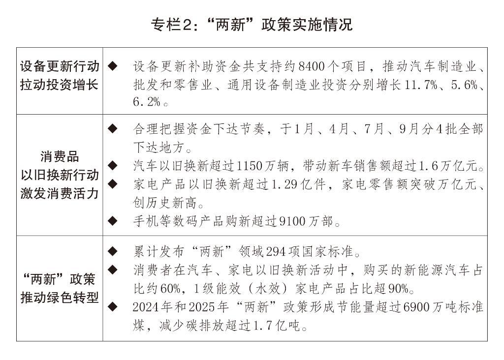 (一)宏觀政策更加積極有為,經(jīng)濟運行總體平穩(wěn)、穩(wěn)中有進。在2024年9月26日中央政治局會議部署實施一攬子增量政策基礎(chǔ)上,2025年又接續(xù)出臺實施一系列針對性舉措,有力對沖了經(jīng)濟下行壓力,穩(wěn)住了宏觀經(jīng)濟大盤,推動高質(zhì)量發(fā)展取得新成效。