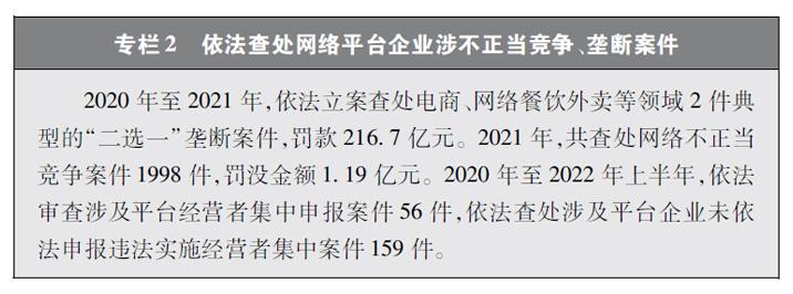 保障公平競爭的網(wǎng)絡(luò)市場環(huán)境。隨著網(wǎng)絡(luò)平臺企業(yè)不斷擴展自身的體量和實力,“掐尖式并購”、無正當理由屏蔽鏈接、“二選一”、大數(shù)據(jù)殺熟、流量挾持等妨礙市場公平競爭的問題也逐漸凸顯。中國積極回應人民群眾訴求,在支持網(wǎng)絡(luò)平臺企業(yè)創(chuàng)新發(fā)展的同時,依法規(guī)范和引導資本健康發(fā)展,采取多種治理平臺競爭失序的執(zhí)法舉措。聚焦大型網(wǎng)絡(luò)平臺價格欺詐、低價傾銷等重點問題,通過行政約談、行政指導、規(guī)則指引等多種監(jiān)管手段,整治壟斷和不正當競爭行為。圍繞民生、金融、科技、傳媒等重點行業(yè),依法審查涉及平臺經(jīng)營者集中案件,防止可能妨礙市場競爭和創(chuàng)新發(fā)展的并購行為,引導網(wǎng)絡(luò)平臺企業(yè)增強合規(guī)意識,規(guī)范自身經(jīng)營行為。通過一系列行動,平臺經(jīng)濟市場環(huán)境不斷優(yōu)化,公平競爭的行業(yè)生態(tài)穩(wěn)步向好,中小企業(yè)獲得更廣闊的發(fā)展空間,統(tǒng)一、開放、公平、競爭、有序的網(wǎng)絡(luò)競爭環(huán)境正在形成。