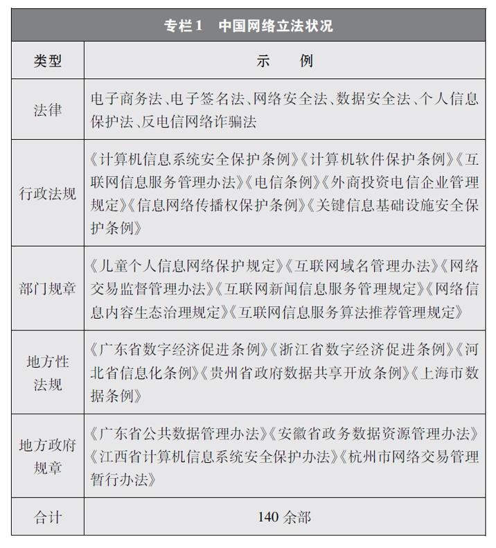 中國網(wǎng)絡(luò)立法隨著互聯(lián)網(wǎng)發(fā)展經(jīng)歷了從無到有、從少到多、由點到面、由面到體的發(fā)展過程。第一階段從1994年至1999年,是接入互聯(lián)網(wǎng)階段。上網(wǎng)用戶和設(shè)備數(shù)量穩(wěn)步增加。這一階段網(wǎng)絡(luò)立法主要聚焦于網(wǎng)絡(luò)基礎(chǔ)設(shè)施安全,即計算機系統(tǒng)安全和聯(lián)網(wǎng)安全。第二階段從2000年至2011年,是PC互聯(lián)網(wǎng)階段。隨著計算機數(shù)量逐步增加、上網(wǎng)資費逐步降低,用戶上網(wǎng)日益普遍,網(wǎng)絡(luò)信息服務迅猛發(fā)展。這一階段網(wǎng)絡(luò)立法轉(zhuǎn)向側(cè)重網(wǎng)絡(luò)服務管理和內(nèi)容管理。第三階段從2012年至今,是移動互聯(lián)網(wǎng)階段。這一階段網(wǎng)絡(luò)立法逐步趨向全面涵蓋網(wǎng)絡(luò)信息服務、信息化發(fā)展、網(wǎng)絡(luò)安全保護等在內(nèi)的網(wǎng)絡(luò)綜合治理。在這一進程中,中國制定出臺網(wǎng)絡(luò)領(lǐng)域立法140余部,基本形成了以憲法為根本,以法律、行政法規(guī)、部門規(guī)章和地方性法規(guī)、地方政府規(guī)章為依托,以傳統(tǒng)立法為基礎(chǔ),以網(wǎng)絡(luò)內(nèi)容建設(shè)與管理、網(wǎng)絡(luò)安全和信息化等網(wǎng)絡(luò)專門立法為主干的網(wǎng)絡(luò)法律體系,為網(wǎng)絡(luò)強國建設(shè)提供了堅實的制度保障。