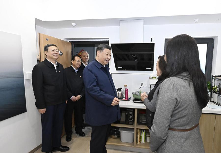 2023年11月29日,習近平總書記考察閔行區(qū)新時代城市建設(shè)者管理者之家。新華社記者 申宏 攝