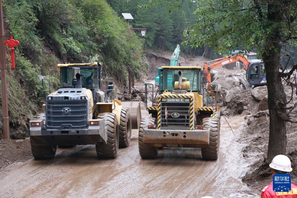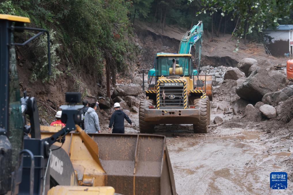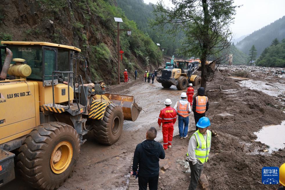 8月8日,救援人員在榆中縣馬坡鄉(xiāng)山洪災害現(xiàn)場搶修中斷道路。新華社發(fā)(金萬貴攝)