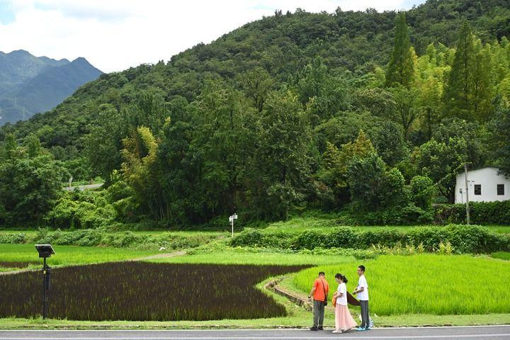 2025年8月6日,游客在浙江省湖州市安吉縣余村觀賞五彩田園景觀。新華社記者 毛竹 攝