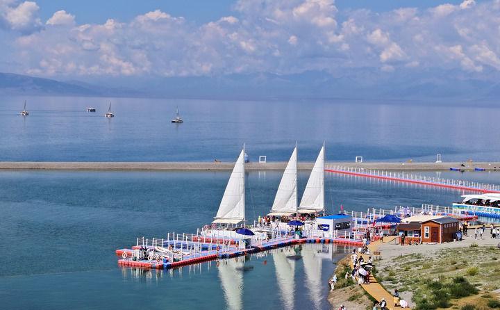 這是2025年7月17日在新疆博爾塔拉蒙古自治州賽里木湖景區(qū)拍攝的電動帆船游玩項(xiàng)目(無人機(jī)照片)。新華社發(fā)(張利民攝)