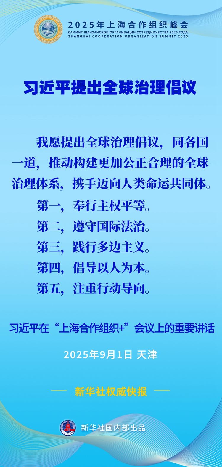 國家主席習近平在“上海合作組織+”會議上提出全球治理倡議:第一,奉行主權(quán)平等;第二,遵守國際法治;第三,踐行多邊主義;第四,倡導(dǎo)以人為本;第五,注重行動導(dǎo)向。