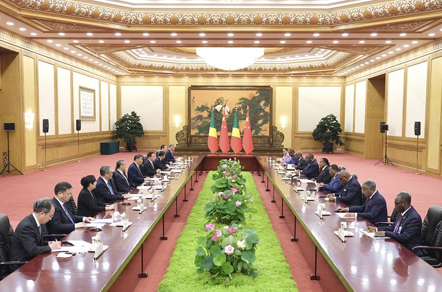 習(xí)近平強(qiáng)調(diào),剛果(布)擔(dān)任中非合作論壇非方共同主席國以來,同中方一道積極推動(dòng)北京峰會(huì)成果落實(shí),取得可喜成績。中方愿同非方共同實(shí)施好“十大伙伴行動(dòng)”,打造綠色產(chǎn)業(yè)、電子商務(wù)和支付、科技、人工智能等新增長點(diǎn),推動(dòng)中非合作提質(zhì)升級(jí)。當(dāng)前國際形勢變亂交織,中國和非洲作為全球南方重要成員,要肩負(fù)起捍衛(wèi)國際公平正義、維護(hù)世界和平、促進(jìn)共同發(fā)展的歷史責(zé)任,攜手推動(dòng)構(gòu)建人類命運(yùn)共同體。