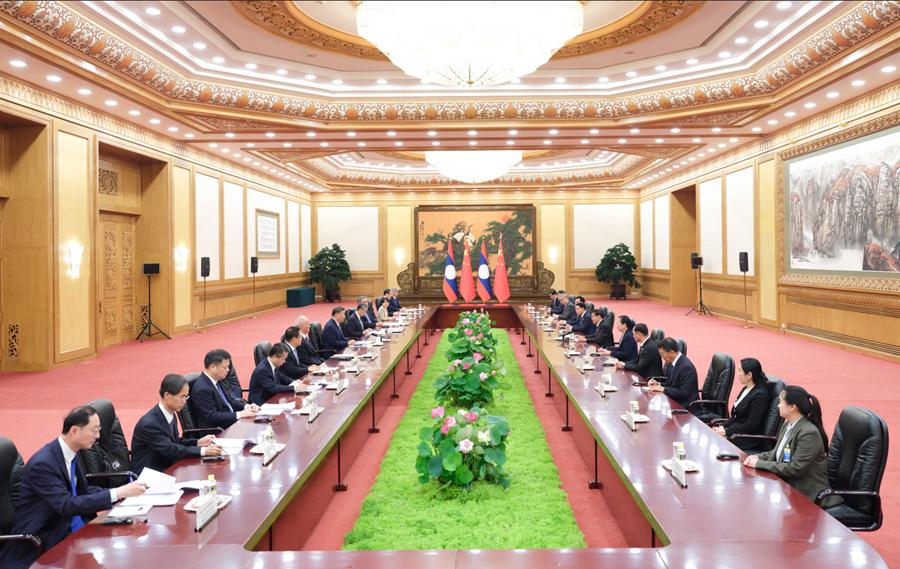 習近平指出,2023年10月我同總書記同志一道簽署構建中老命運共同體新的五年行動計劃以來,雙方各領域合作成果顯著。兩黨理論研討會和干部培訓合作扎實推進,中老鐵路“一地兩檢”政府間協(xié)議正式簽署,大項目及反腐敗和追逃追贓等合作富有成效,彰顯了中老命運共同體的戰(zhàn)略意義和示范作用。
