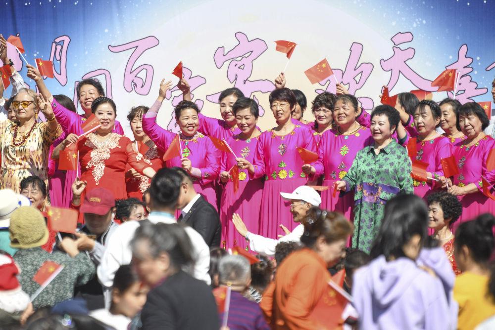 2024年9月15日,新疆烏魯木齊市天山區(qū)固原巷社區(qū)舉辦“中秋月圓百家宴 歡天喜地迎國(guó)慶”活動(dòng),人們載歌載舞,共享節(jié)日歡樂(lè)。