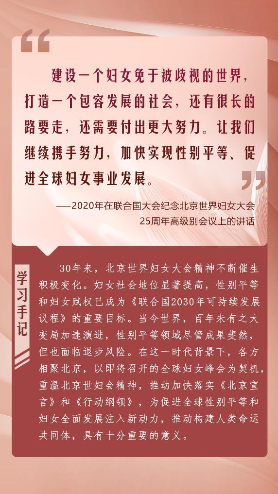 在全球婦女峰會即將舉行之際,我們重溫習近平總書記的重要論述,共同展望婦女發(fā)展的美好未來,期待全球婦女事業(yè)發(fā)展譜寫新的絢爛篇章。