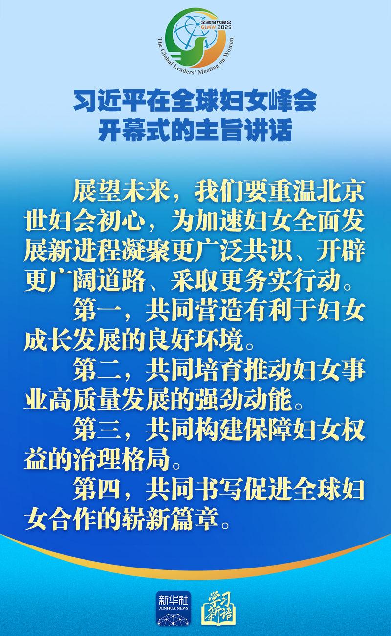 10月13日上午,國家主席習(xí)近平在北京國家會(huì)議中心出席全球婦女峰會(huì)開幕式并發(fā)表題為《弘揚(yáng)北京世婦會(huì)精神 加速婦女全面發(fā)展新進(jìn)程》的主旨講話。講話金句,一起學(xué)習(xí)!