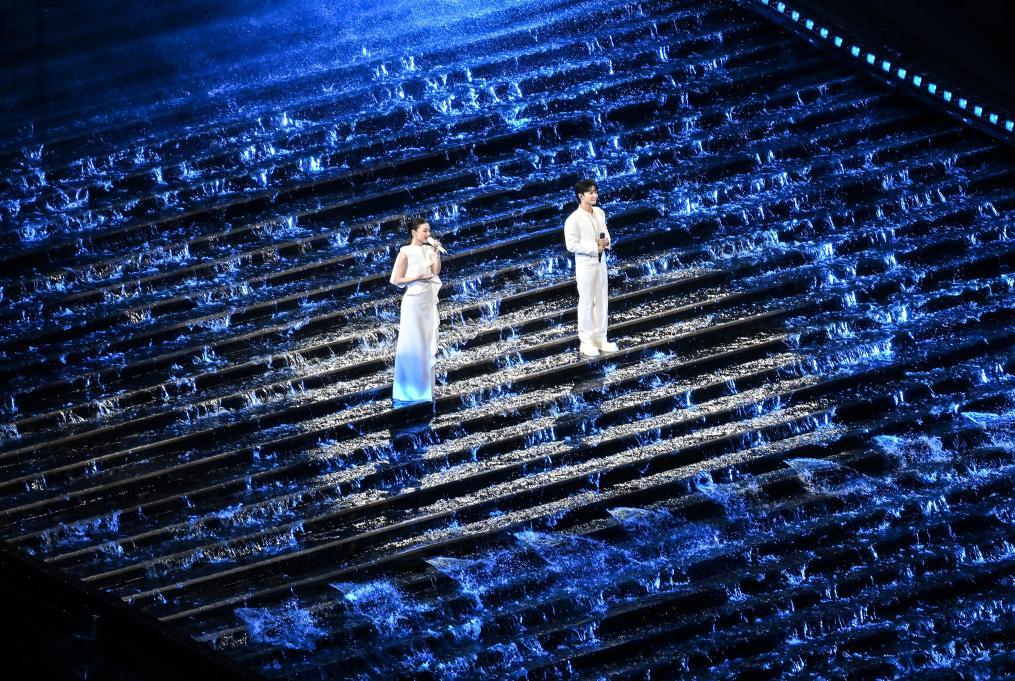 11月9日,歌手周深(右)和單依純?cè)陂_幕式現(xiàn)場(chǎng)演唱。新華社記者 李鑫 攝