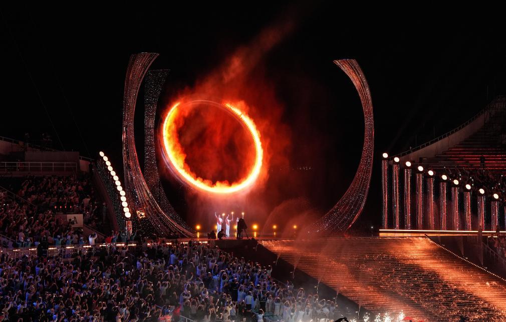 9日的羊城廣州,廣東奧體中心燈光璀璨,宛如飛揚(yáng)的緞帶。場(chǎng)內(nèi),“同心圓”水舞臺(tái)波光粼粼,倒映萬家燈火?;浉郯拇鬄硡^(qū)面水而生、因水而興——這是一場(chǎng)以“水”為脈絡(luò)的全運(yùn)會(huì)開幕式。