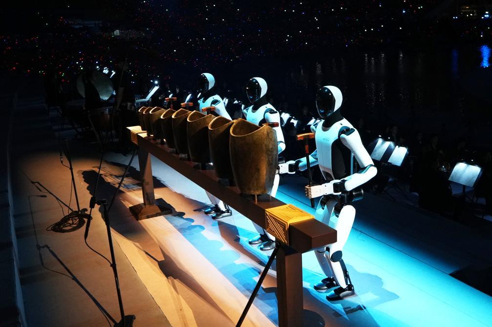 “千年前的禮制,繞梁三日不絕于耳。”開幕式音樂總設(shè)計(jì)師舒楠介紹道,“處于科技前沿的機(jī)器人與幾千年前出土的青銅句鑃,形成了跨越千年的和鳴?!?/p>