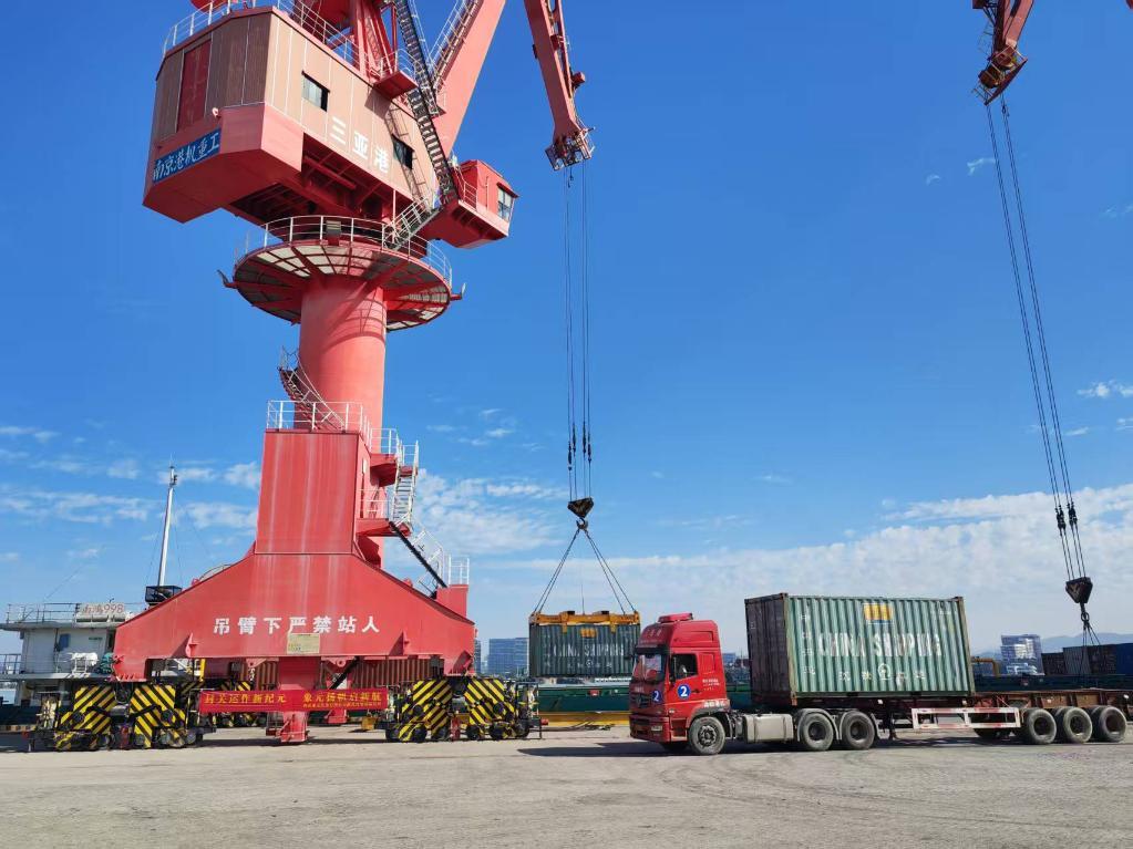 12月18日,三亞港“二線口岸”南山港區(qū)海關(guān)查驗場,第一批出島貨物順利通關(guān)。新華社記者 劉博 攝