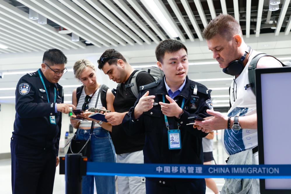 12月18日,海口美蘭邊檢站民輔警為入境旅客服務(wù)。新華社發(fā) (孫浩戎 攝)