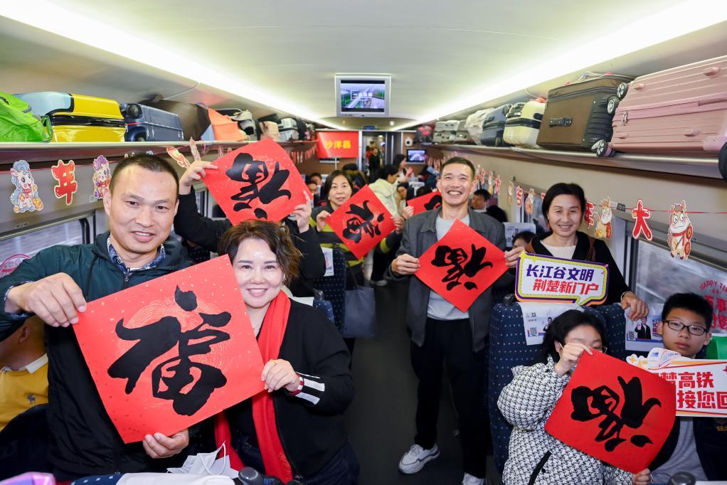 高鐵飛馳,歸鄉(xiāng)的人飽含著對家的眷戀、對年的期盼和對美好生活的向往。