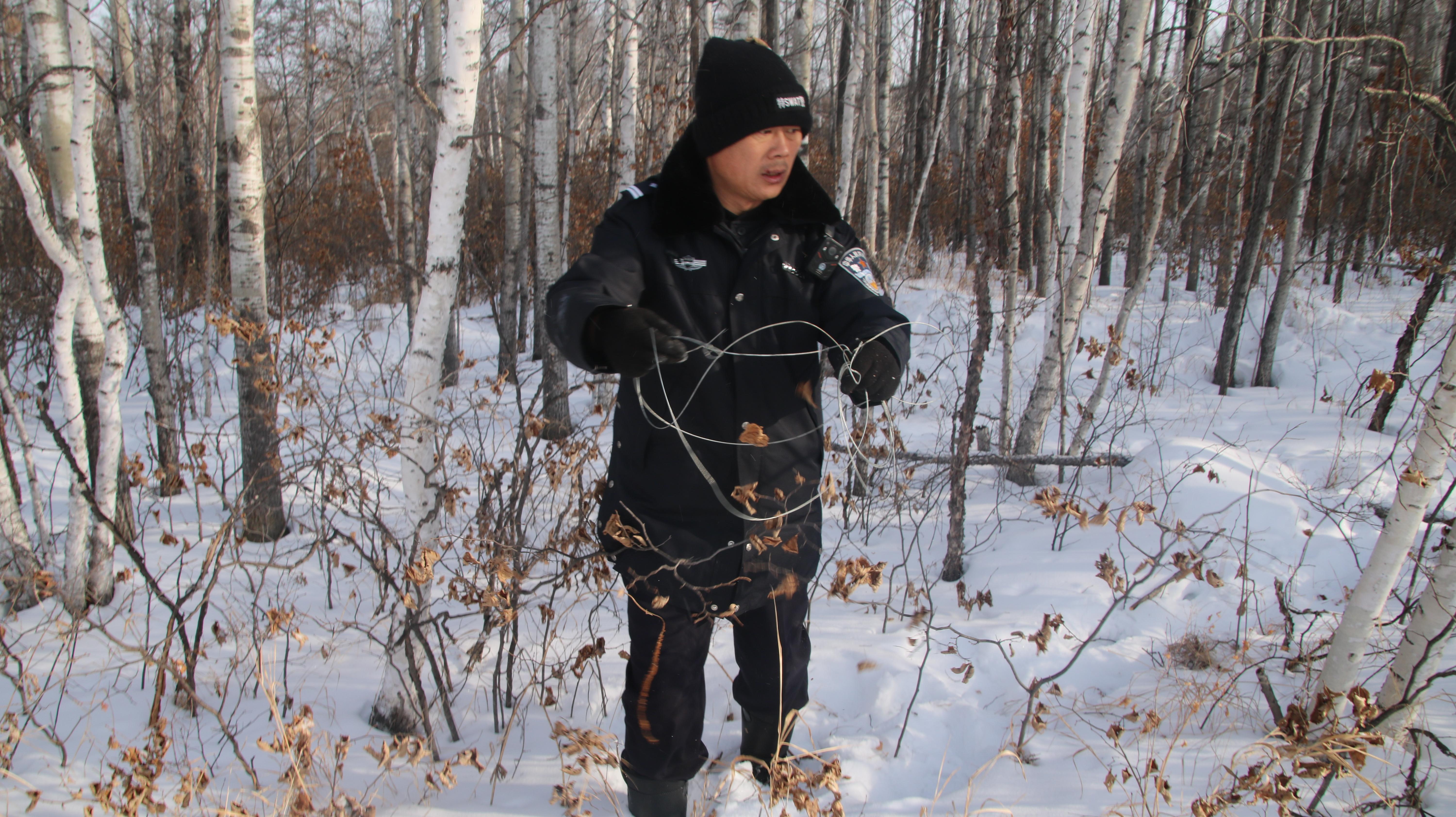 “老鄉(xiāng),過年進山串親戚可留神,別踩著陌生的繩套!那是非法獵套,既傷野生動物,也容易誤著人!”大年初三清晨,內(nèi)蒙古大興安嶺畢拉河林區(qū)的氣溫低至零下30攝氏度,畢拉河分局龍頭派出所教導(dǎo)員王云良呵出的白氣瞬間凝成霜花,他一邊給進山走親的群眾遞上野生動物保護宣傳手冊,一邊反復(fù)叮囑著安全注意事項。身旁的民警蘇力得正彎腰檢查著林間一處隱蔽的獸徑,手套上已經(jīng)沾了厚厚的積雪。
