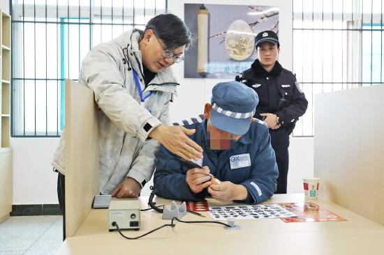 圖為蛋雕非遺代表性傳承人于潔林指導罪犯雕刻。