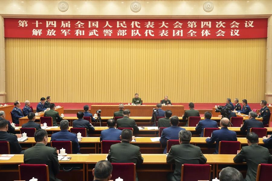 3月7日下午,中共中央總書記、國(guó)家主席、中央軍委主席習(xí)近平出席十四屆全國(guó)人大四次會(huì)議解放軍和武警部隊(duì)代表團(tuán)全體會(huì)議并發(fā)表重要講話。新華社記者 李剛 攝