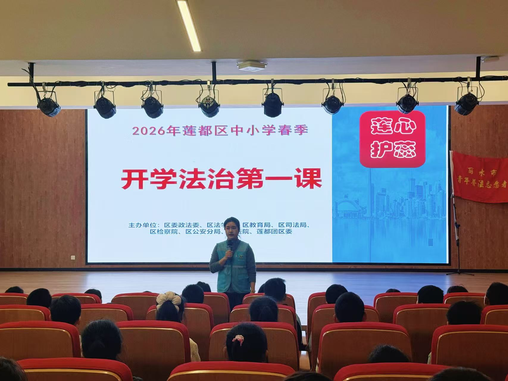 為進(jìn)一步提升少年兒童法治素養(yǎng),營造全社會(huì)關(guān)愛未成年人健康成長的良好氛圍,結(jié)合2026年麗水市蓮都區(qū)中小學(xué)校春季開學(xué)法治第一課主題,3月5日下午,由浙江省麗水市法學(xué)會(huì)、蓮都區(qū)法學(xué)會(huì)牽頭,聯(lián)合市、區(qū)兩級(jí)多家單位共同舉辦的2026“浙麗護(hù)蕊”法治宣傳教育活動(dòng)在蓮都區(qū)聯(lián)城小學(xué)順利舉行,為孩子們送上一堂生動(dòng)且有溫度的“開學(xué)法治必修課”。
